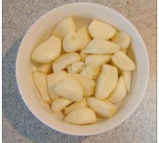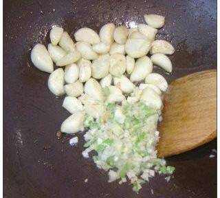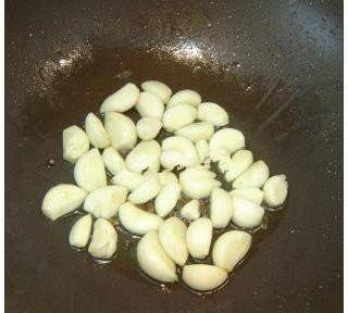 7.鍋裡加入適量的油,油熱後,把蒜放入,再放一些花椒,小火炸出香味,至蒜變金黃色