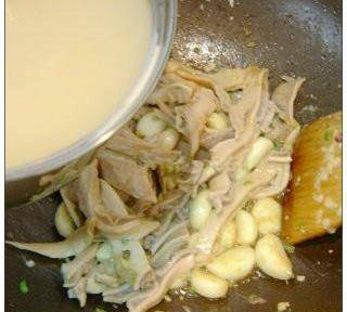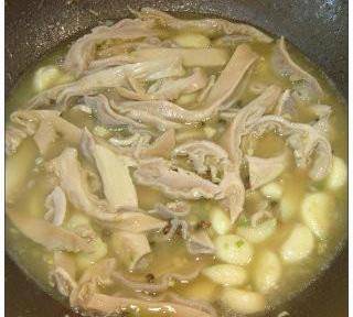 9.翻炒片刻,放入肚條翻炒,同時放入料酒、鹽、生抽和胡椒粉