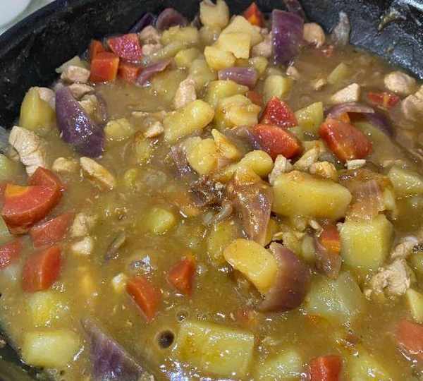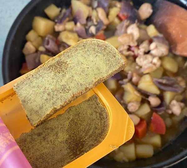 第14步、咖喱塊煮化,湯汁濃稠即可。
