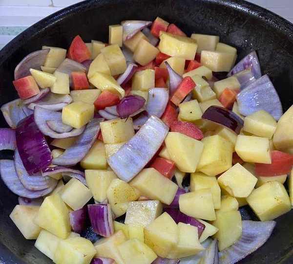 第8步、倒入胡蘿卜,土豆翻炒均勻。