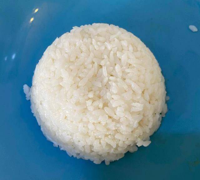 第15步、盛一碗米飯,稍微壓緊實一點,扣在盤子裡。