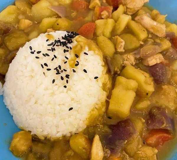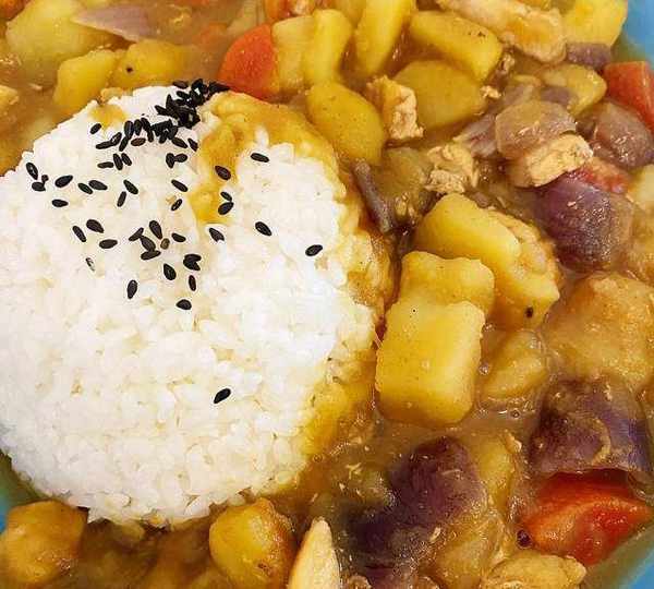第16步、倒入咖喱土豆雞肉,灑一點熟的黑芝麻。