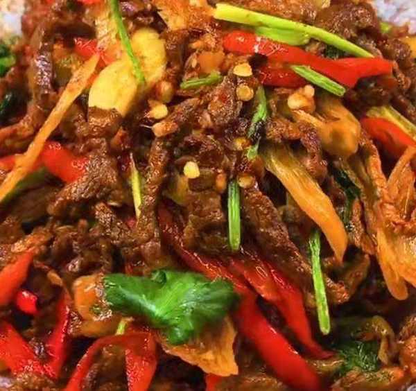 配料:牛肉,紅辣椒,醃制的野辣椒,香菜,薑,大蒜,洋蔥,料酒。