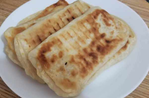 2,和好的面團手揉一下,松馳十分鐘,200克面團可以做2、3個火燒。