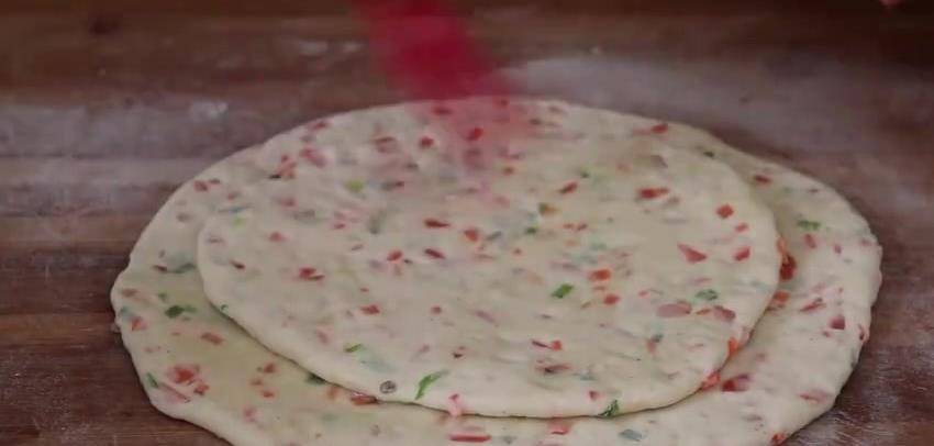 胡蘿卜這樣做真好吃,營養解饞,比吃肉還香,上桌就掃光!今天分享一個好吃的千層烙餅做法。首先將胡蘿卜切絲,碗中放100克面粉,1克酵母用筷子攪勻,邊倒邊攪拌攪成絮狀。然後下手揉成面團,裹上保鮮膜醒發一個小時。醒好後揭開保鮮膜,搓成長條,切成大小相等的面劑。