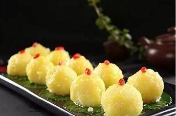 2、鍋裡摻鮮湯燒開,加入鹽、味精和金瓜汁先攪勻,用濕生粉勾成二流芡後,再出鍋分別舀在蘿卜丸子上面,最後點綴少許的魚子便好。