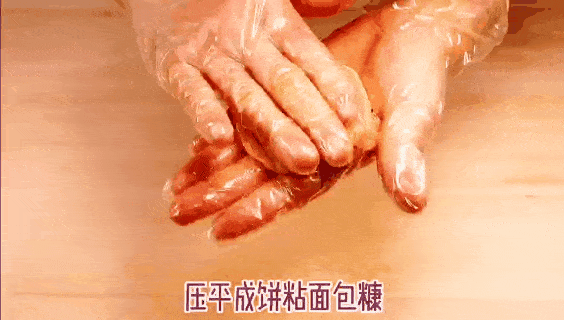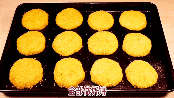 4、壓平成餅後粘面包糠,