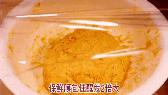 3、保鮮膜包住醒發2倍大,揉搓成小圓球