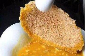 3、上桌後,由服務員當著客人面用小勺敲碎鍋巴,再讓客人將鍋巴與燴好的菜拌勻瞭吃。