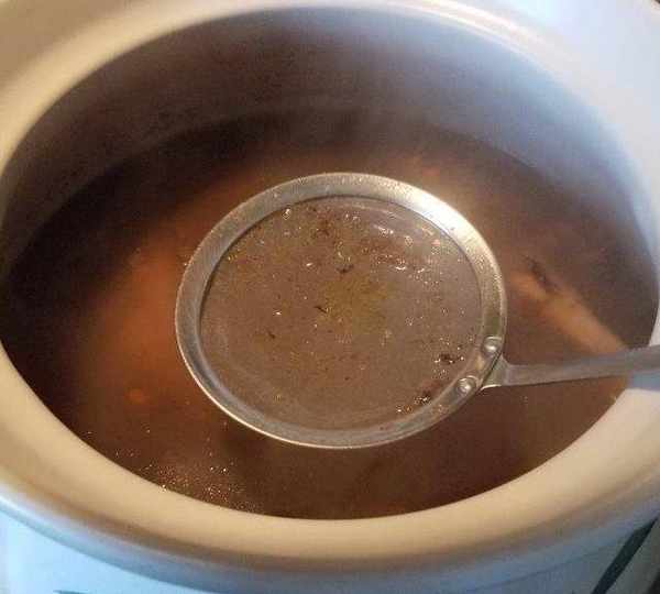 第14步、煲好後,撇去肥油。(我傢不放鹽的。喜歡的可以放鹽調味。)