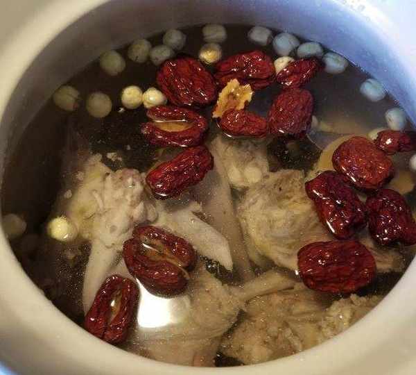 原料:老雞、羊肚菌、海參、冷凍鮑魚、紅棗、枸杞子、蓮子。