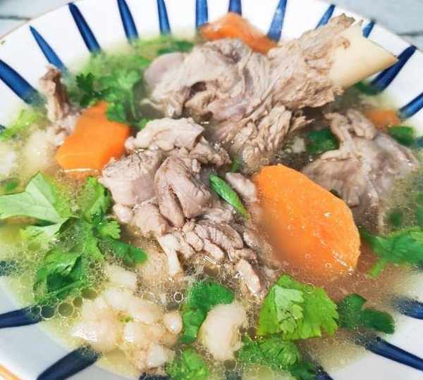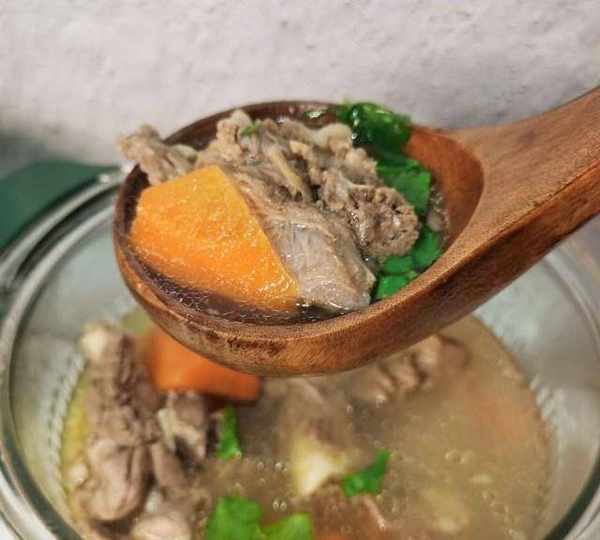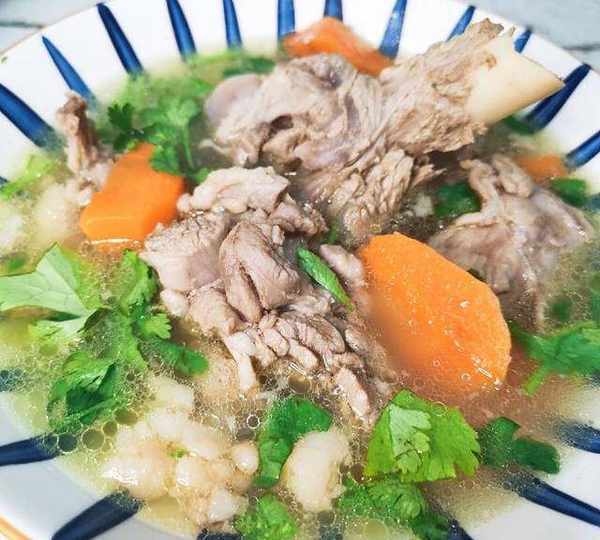 原料:帶肉羊骨頭、胡蘿卜、香菜、鹽。