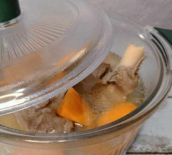 第3步、養生鍋加入適量水,放入羊骨頭,大火燒開燉半個小時,在轉慢燉燉半個小時。
