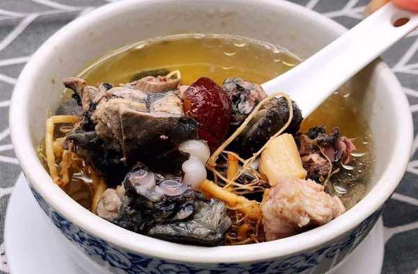 最後再來說說這個桂圓蓮子木耳烏雞湯的吃法,你知道嗎?烏雞是非常好的補氣血的食材,尤其是對我們產後的媽媽們,補身體是非常好的。