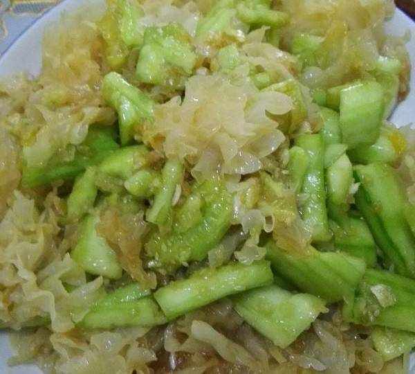 所以下面就介紹兩個不錯的銀耳吃法,首先來看這個銀耳拌黃瓜,我們需要銀耳一大朵、黃瓜兩根、蒜泥適量、鹽、陳醋、香油。