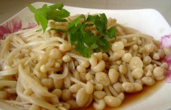 清蒸金針菇:金針菇去根洗凈,放在盤子裡,上鍋蒸3-5分鐘,倒掉蒸好後盤子裡多餘的水(可以用來炒菜、或者加到湯裡面),晾涼後用生抽、醋、鹽拌,最後淋上香油,用綠葉作點綴即可,你愛吃金針菇嗎?