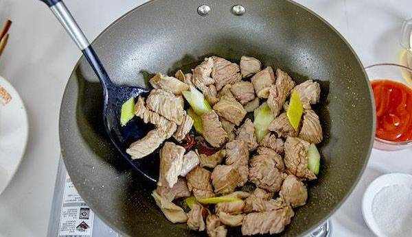 7. 爆香後放牛肉煸炒。