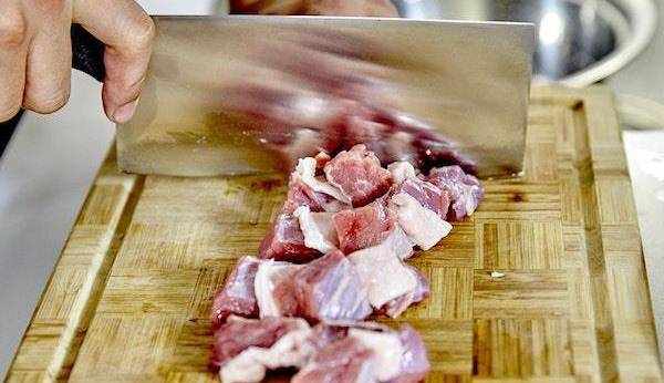 2. 牛腩切成方塊狀。
