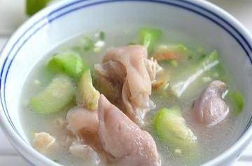 材料:紅棗30克、黃耆、枸杞子各12克,當歸5克、豬前蹄1隻、絲瓜300克、豆腐250克、香菇30克、薑5片、鹽少許。