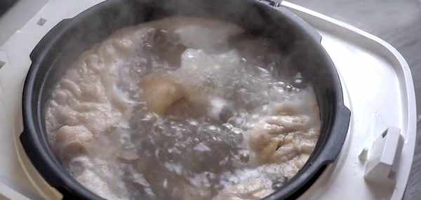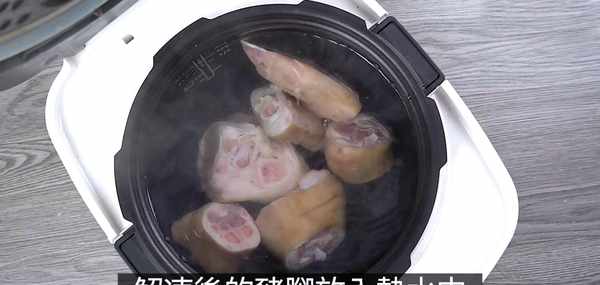 步驟2:將泡水解凍後的豬腳,放入內鍋的熱水中,內鍋中的水淹過豬腳即可。