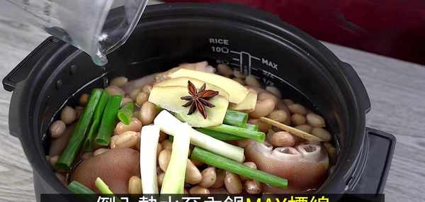 步驟8:再依序放入花生、蔥段、薑片、八角。