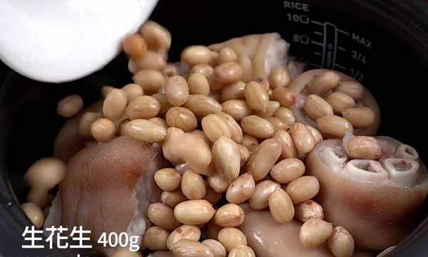 步驟7:將洗好的豬腳再放入鍋中,再放入花生。