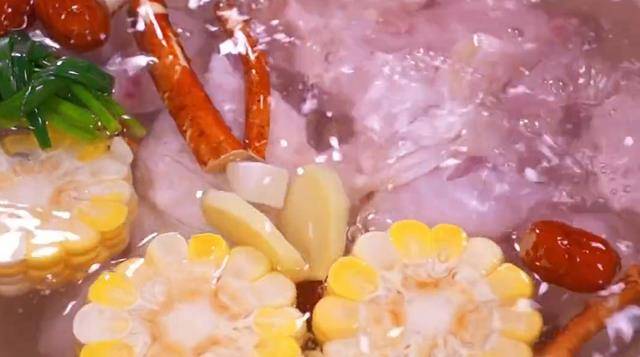 接著放入玉米和蔥薑,最後我們倒入清水直至淹沒雞肉