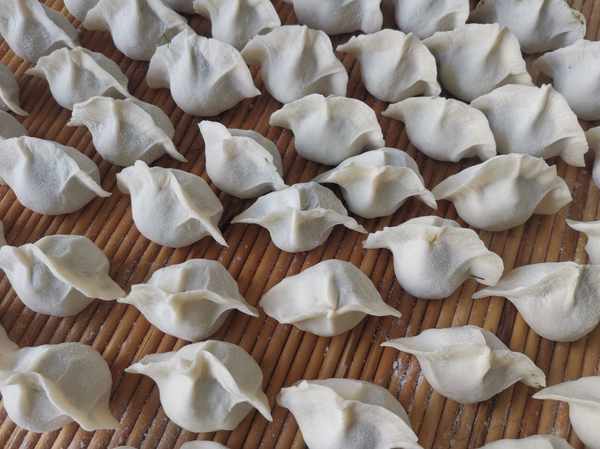 第九步:餃子全部包完,放到蓋簾上,就可以準備煮餃子了。
