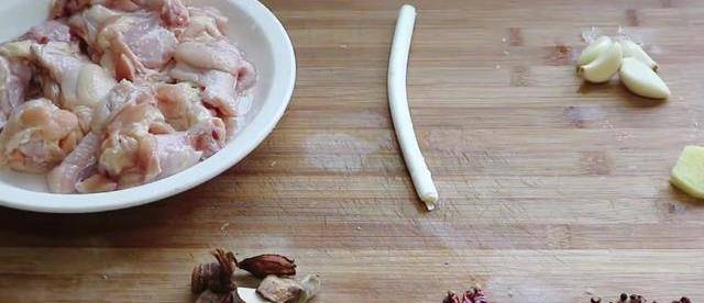 準備食材:小雞腿肉、大蔥、蒜、生薑、幹辣椒、大料、花椒