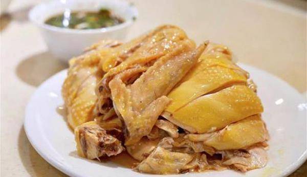 因為白斬雞的雞肉是會放到冰水裡面的,所以白斬雞不僅吃起來特別清涼,而是雞肉也是特別緊實,再蘸上一點醬料就更加好吃瞭。