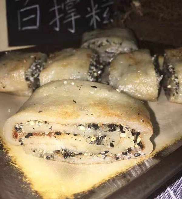 咬起來是厚厚的千層軟糯的糕點的感覺,裡面隔著一層又一層的餡料,多重味道,各種食材的香氣氤氳於口腔內,所以特別懷念這種賣少見少的“百撐糍”。