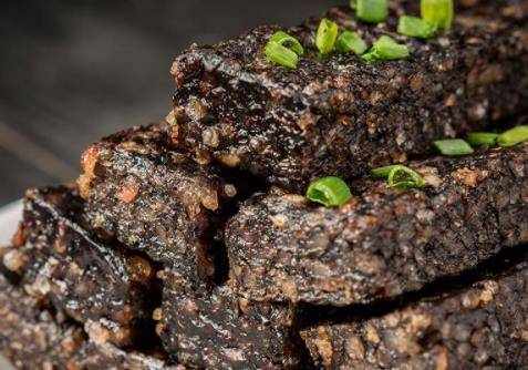 這種東西就是豬血糕,就是用豬血制作成的一種糕點,南方人應該都吃過,裡面加瞭一些糯米和鹽,把它們攪拌均勻以後,再放到蒸鍋上蒸,這時候以後就可以直接吃瞭,南方人還喜歡蘸辣椒醬或者是花生粉吃,甚至還把它當成瞭一種涼菜,老外剛到南方的時候,看到這種東西都不敢吃,因為在老外的眼中,豬血是不能吃的。