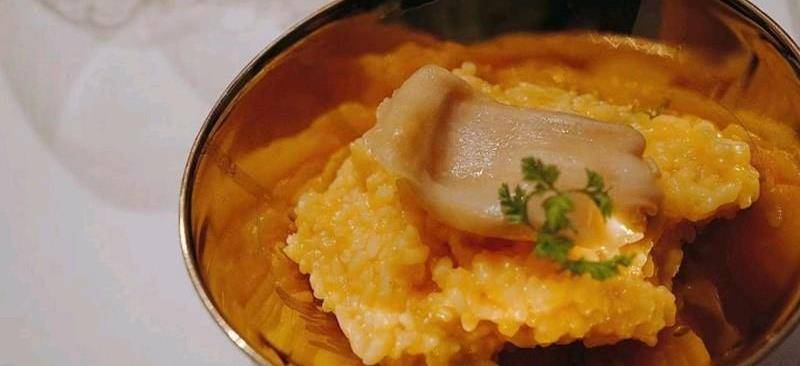 將鍋洗凈後倒入蟹油,待油溫微熱後加入準備好的蟹粉,小火爆香後倒入高湯,加入適量的鹽煮至濃稠