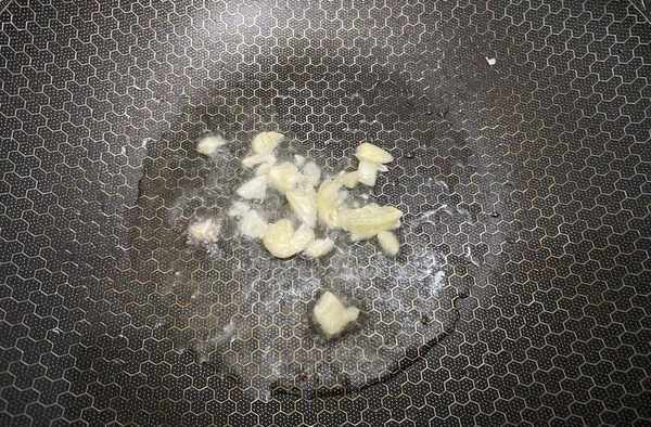 2. 鍋裡適量的油爆香蒜米,註意控制火候。