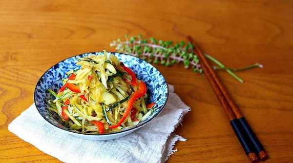 2. 切絲時長短大小盡量切均勻,在炒制過程中受熱才均勻,容易一起熟,口感統一,也好看。