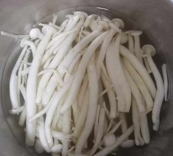 第1步、白玉菇焯水備用。