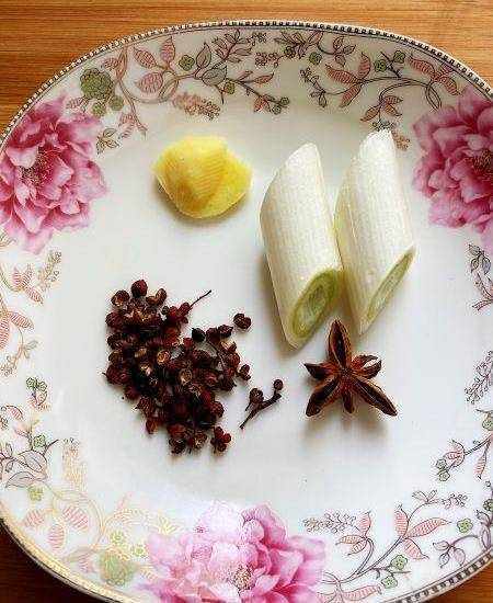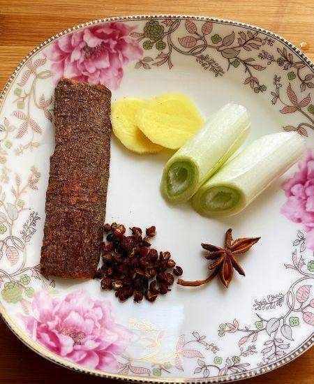 12、準備,蔥段,薑片,八角,花椒,桂皮