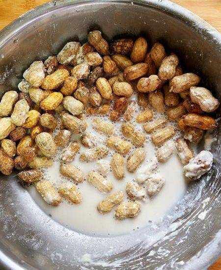 8、倒一點水,搓洗花生,然後再把面粉沖洗掉,這樣洗的比較幹凈。