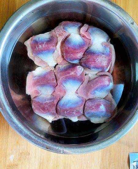 16、沒有買到鮮鴨胗,買的冷凍的,常溫解凍之後,清洗幹凈