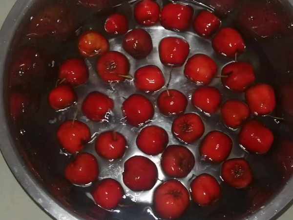 第二步:把山楂放入鹽水中浸泡10分鐘,這樣方便去掉山楂表面的臟東西。