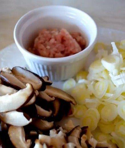 1、食材準備:香菇、面條、豬肉、蔥、醬油、油各適量;