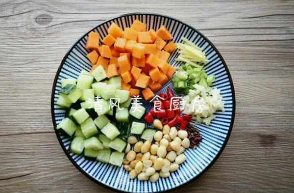 黃瓜、胡蘿卜各半根 油炸花生米適量