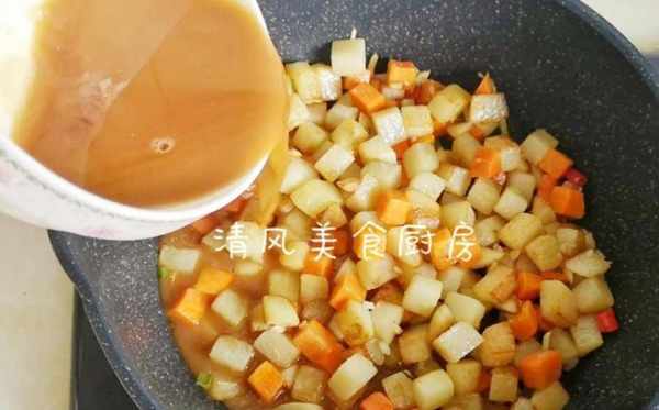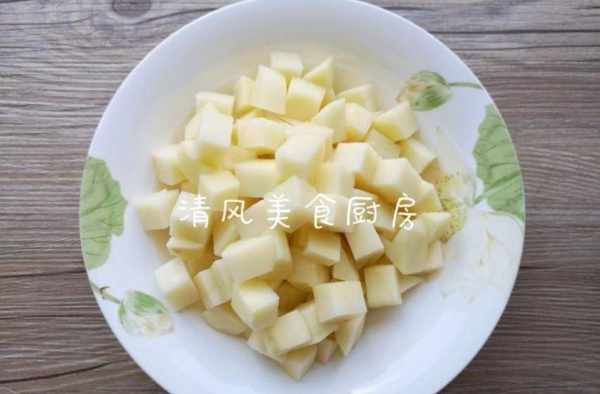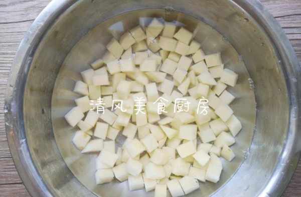 去皮的土豆切成小丁,大約是1.5cm見方吧。