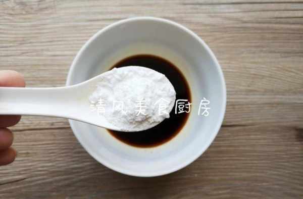 提前調好一碗汁可以避免手忙腳亂,碗中放生抽和醋各兩小勺,糖一勺,淀粉一勺,少許鹽。