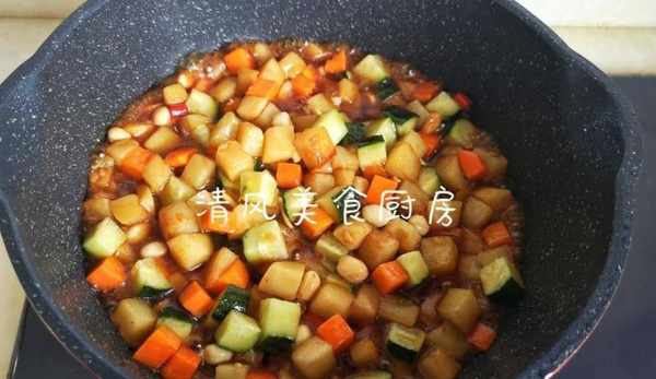 湯汁變得濃稠時放入黃瓜和花生米翻炒幾下,就可以出鍋啦!