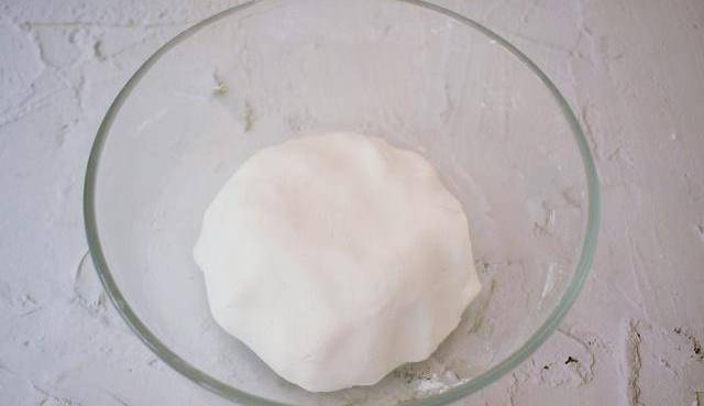 2、再用手揉成不粘手的軟面團狀態,放置一旁蓋上保鮮膜備用