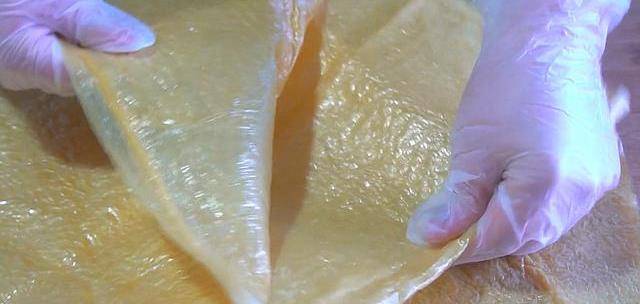 11.準備幹豆皮,發硬的話就加點水浸泡一下,變軟之後就撕開來。