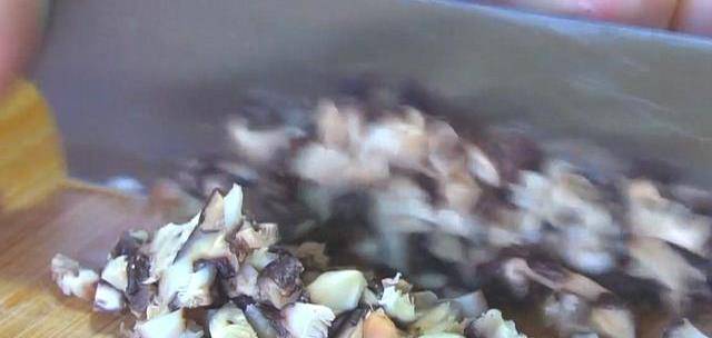 3.蒸飯的時候準備配菜。豬肉切成小肉丁備用。