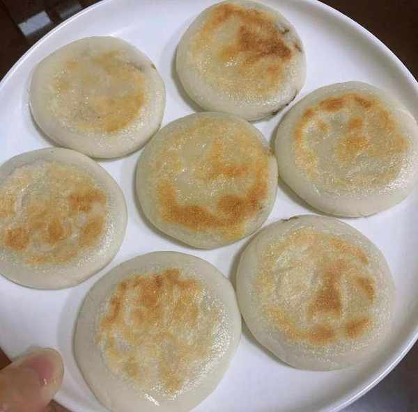 4、平底鍋刷油,放入糯米餅,小火煎至兩面金黃即可出鍋。