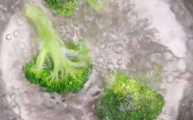 第一步:首先把西蘭花掰成小朵,然後放入350ml的沸水鍋中,大火水煮3分半鐘後,撈出過一下涼水,適當控幹切碎;把準備好的火腿方腸切成丁備用。